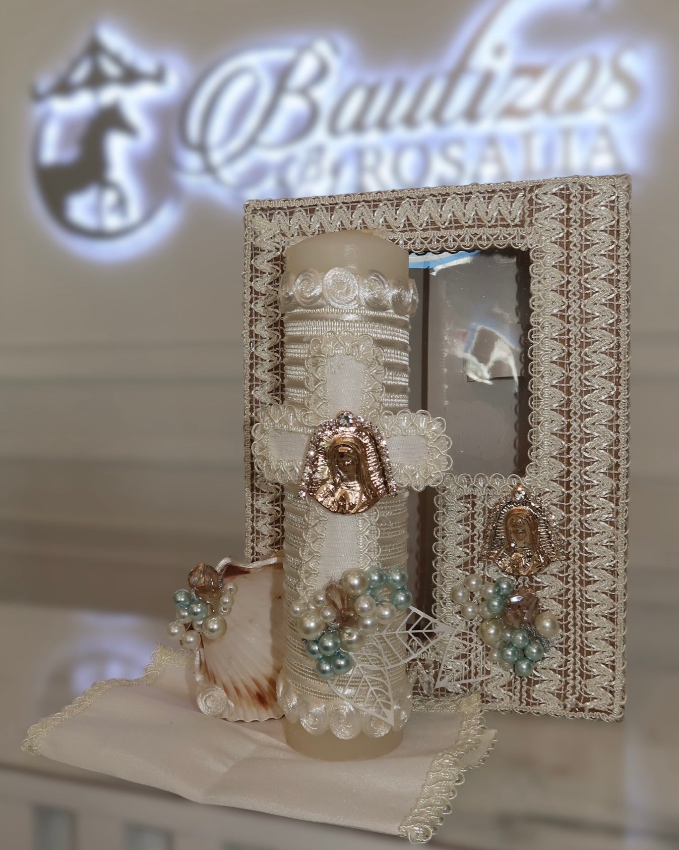 Hermosa vela en caja de madera , con detalles de la virgen de Guadalupe en vela y caja 😍✨